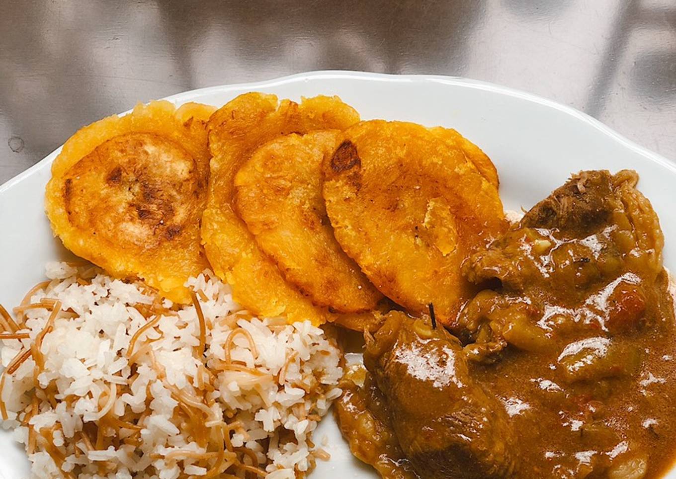 Hello everybody, it's Brad, welcome to my recipe site. Today, we're going to make a special dish, Carne en bistec con patacones, arroz con fideos y aguacate đ„. It is one of my favorites food recipes. For mine, I am going to make it a bit unique. This is gonna smell and look delicious.