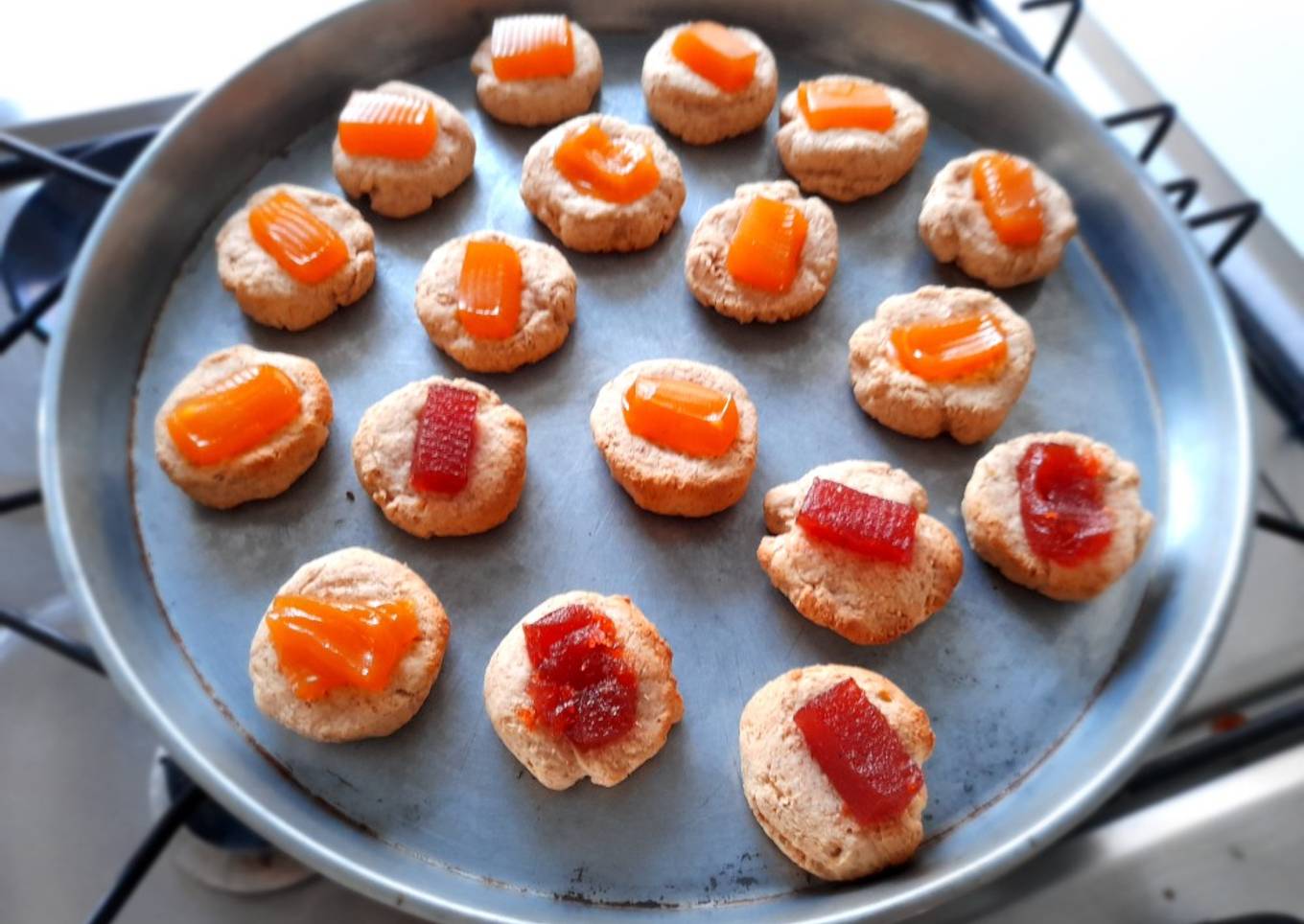 - Formar bolitas y aplastar en el centro con el dedo pulgar para colocar la cantidad de dulce que deseen
