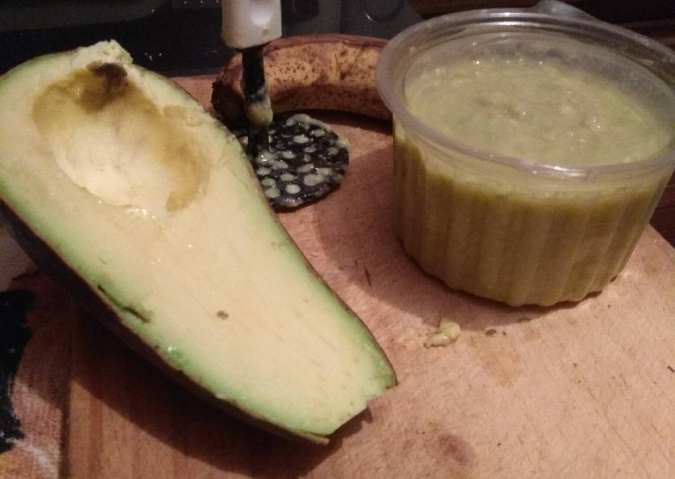 - Sacarle la pulpa a la palta y a la banana, cortarlas en trozos pequeños