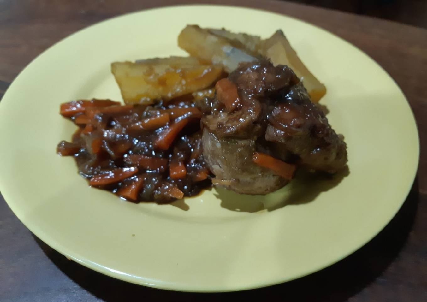 Solomillo de cerdo a la cerveza negra con batatas caramelizadas