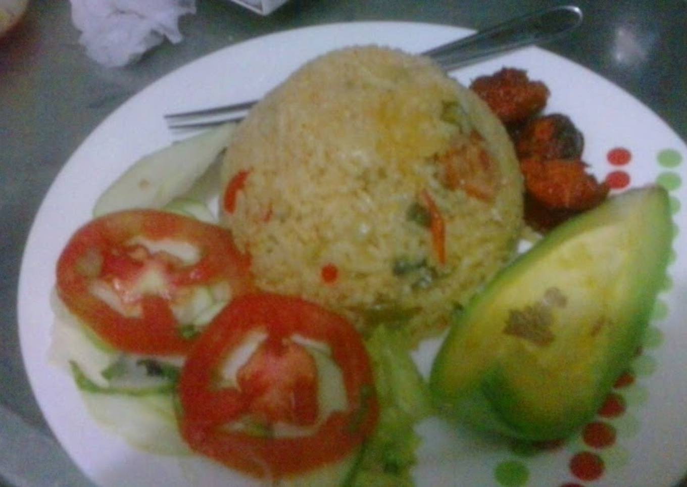 Steps to make to make Arroz con todo ensalada y aguacate y chorizo carmeleño