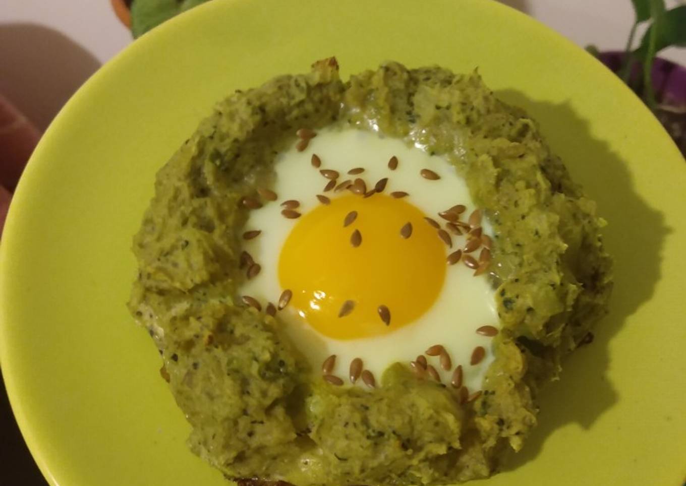 - A帽adimos un huevo y la Maicena a la mezcla. Condimentar a gusto, yo us茅 sal y pimienta. Aceitamos una asadera. Formamos una especie de nido con un hueco en el centro. Lo apoyamos en la asadera y terminamos de armar ah铆 mismo. No teman porque no se desarman. En el hueco colocamos el huevo. Si este es muy grande tal vez debamos retirar un poco de excedente de la clara as铆 no traspasa la canastita en el horno.