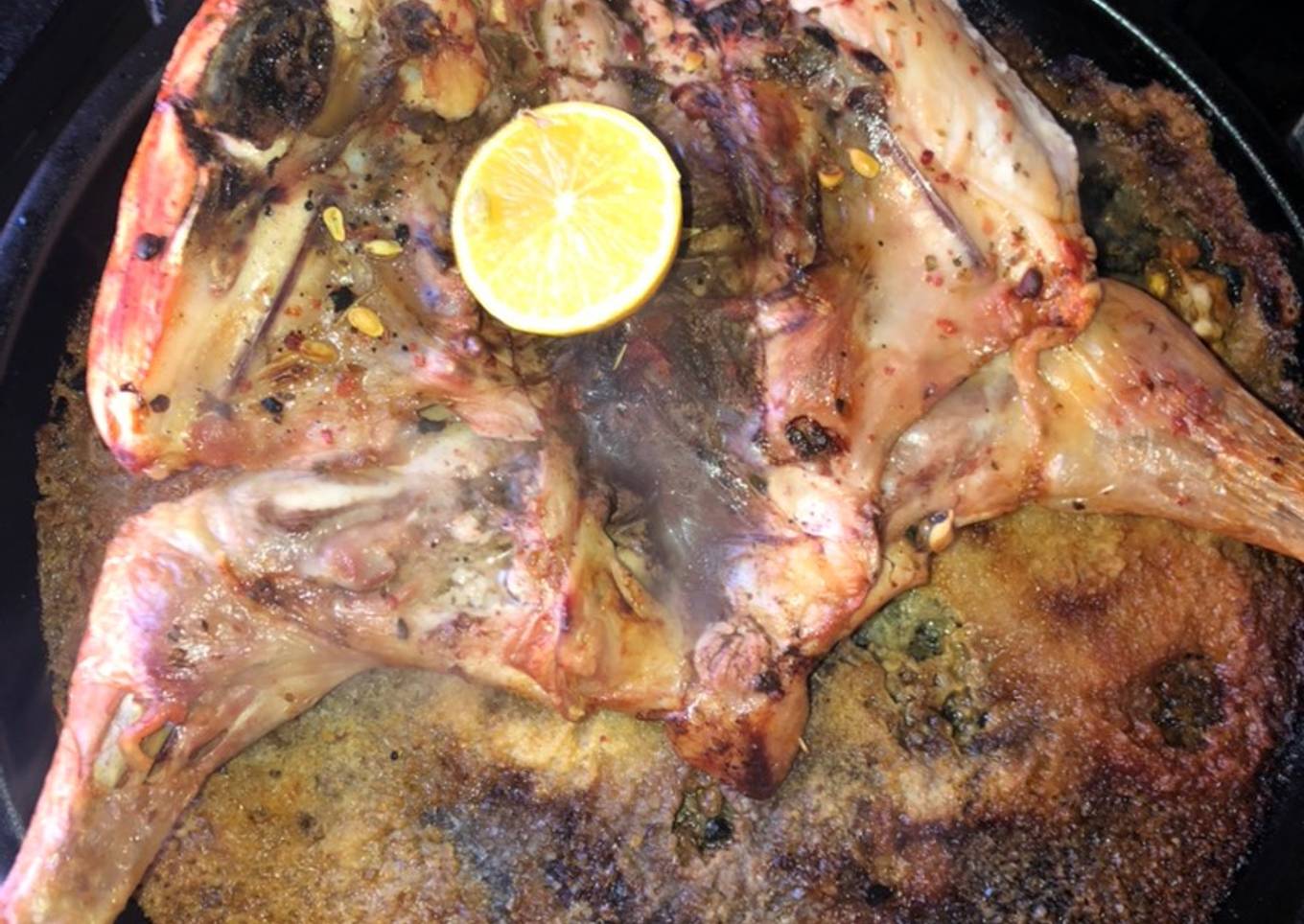 - Poner en una pizzera la sal. Acomodar el pollo de lado de la piel, agregar especias y jugo de limón. Llevar a horno a 200 grados por 1 hora